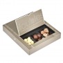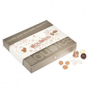 Dualny świat czekoladowych doznań. Kartonik po otwarciu ukazuje dwie częśći. W jednej znajdują się specjalnie dobrane owoce oblane czekoladą, a w drugiej chrupiące orzeszki.