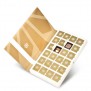W złotym kartoniku znajdują się 24 okienka, w każdym z nich słodka niespodzianka. Okienka ponumerowane są od 1 do 24 i zawierają 12 unikalnych pralinek i 12 czekoladek mlecznych z wizerunkiem Mikołaja, pingwina i choinki.To nietuzinkowy pomysł na słodki upominek z okazji zbliżających się Świąt Bożego Narodzenia.