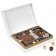 Wyjątkowy zestaw czekoladek na Boże Narodzenie. W białym kartoniku znajduje się tabliczka czekolady, pięć mini czekoladek, osiem wyśmienitych pralinek z pysznymi nadzieniami, oraz 3 zestawy pysznych przekąsek.Prezent ten z pewnością przypadnie do gustu każdemu miłośnikowi czekolady.